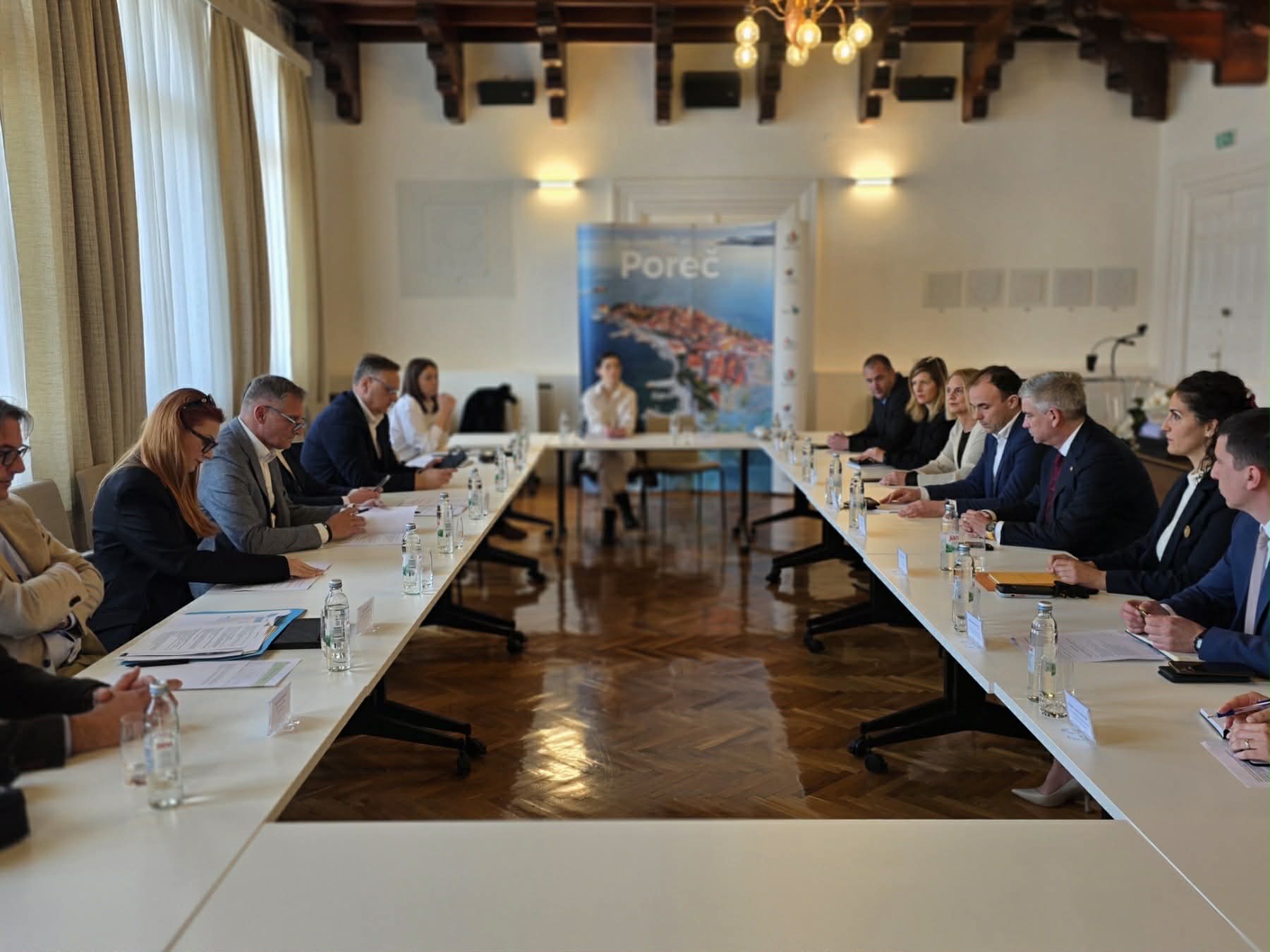 Nakon obilaska gradilišta, u porečkoj gradskoj upravi održan je radni sastanak na kojem se razgovaralo o aktualnim i planiranim prometnim projektima na području grada i okolnih općina. U fokusu je bio nastavak obnove državne ceste DC75, na dionici Poreč – Funtana, kao i dalje prema Vrsaru i Limu, rješavanje ulaza u naselje Varvari na državnoj cesti DC302, uključujući izgradnju kružnog raskrižja radi povećanja sigurnosti i protočnosti prometa te rješavanje pitanja oborinske odvodnje, kao i druge investicije Hrvatskih cesta na području Poreča i Istre. Razgovoralo se i o pitanju objekta tzv. cestarske kuće u blizini naselja Baderna u vlasništvu Hrvatskih cesta, kao i o daljnjim prometnim i lučkim projektima na području grada i županije.