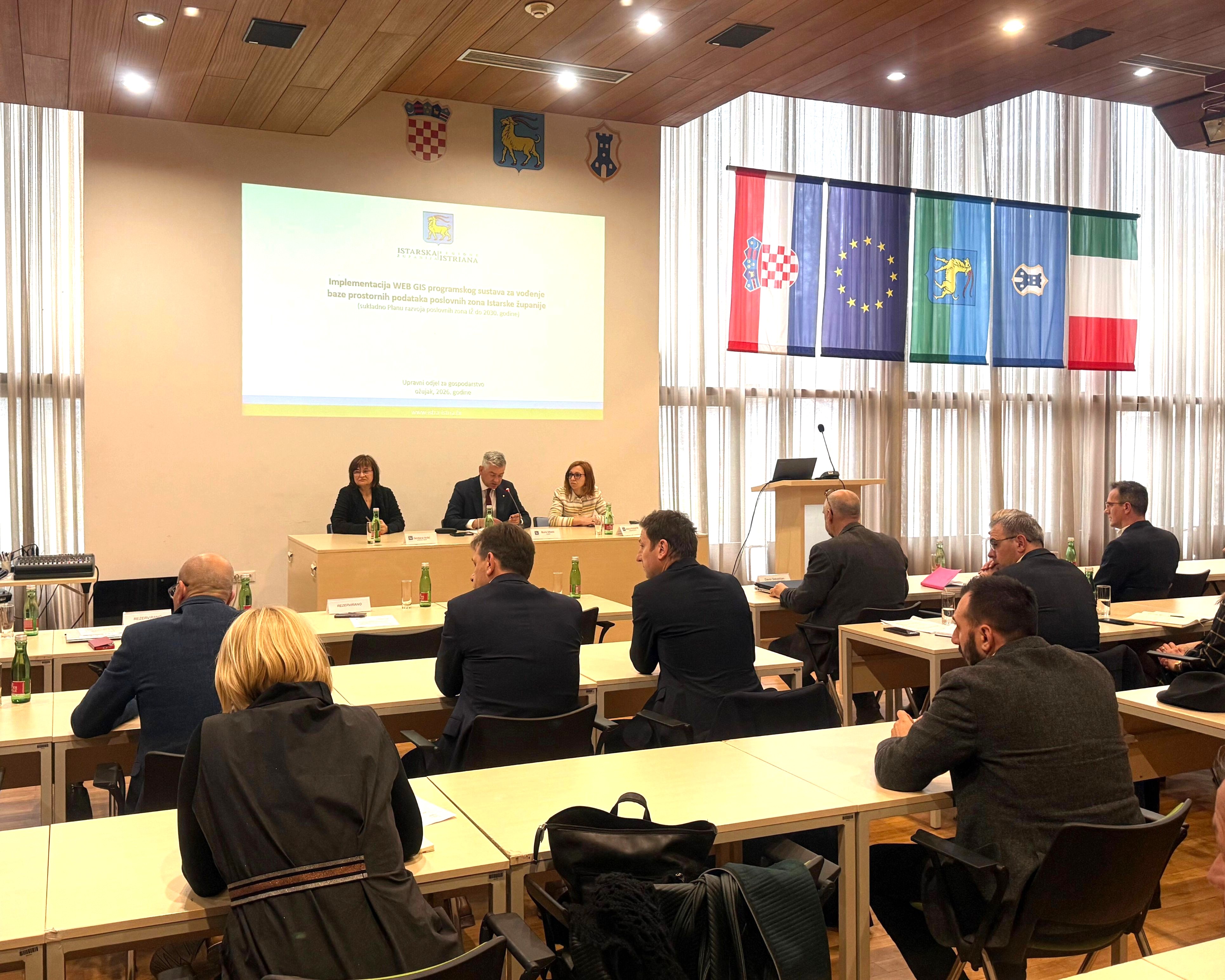 U nastavku, pročelnica za gospodarstvo Cinzia Zubin najavila je implementaciju Web GIS programskog sustava za vođenje baze prostornih podataka poslovnih zona Istarske županije. Istaknula je kako će sustav omogućiti digitalni pregled prostornih i investicijskih podataka o poslovnim zonama na jednom mjestu, a namijenjen je jedinicama lokalne samouprave, poduzetnicima i potencijalnim investitorima.