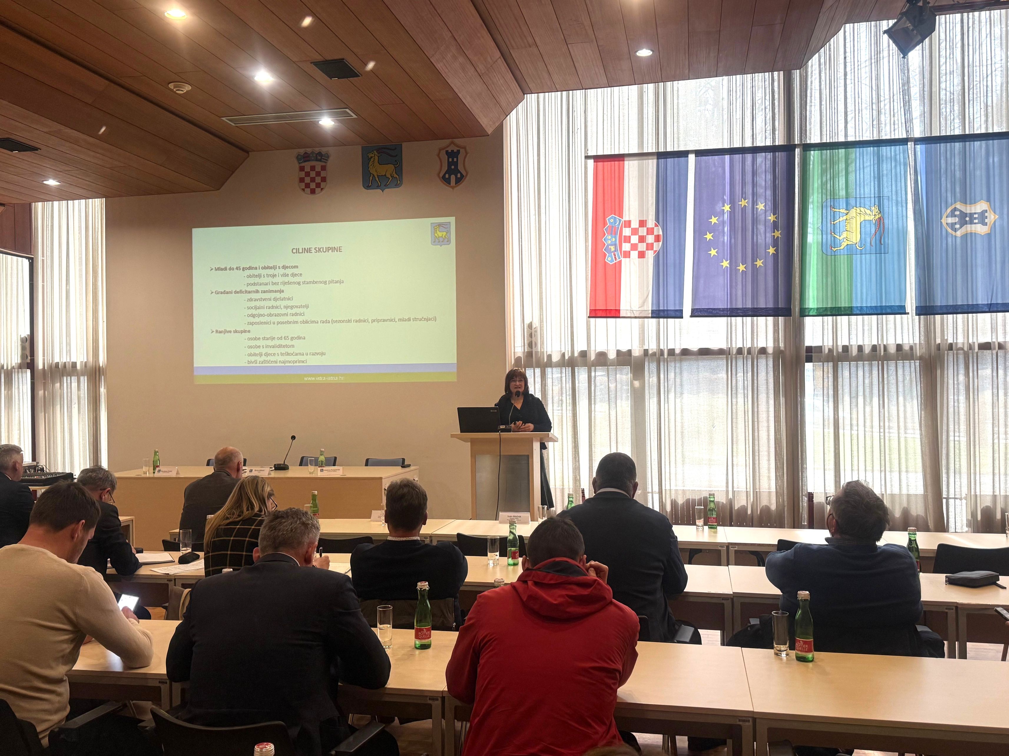 Zamjenica župana Gordana Antić na sjednici je predstavila Program priuštivog stanovanja Istarske županije pod nazivom „U Istri pod svojim krovom“ rekavši kako je gradnjom 22 stana u Puli, Istra, na neki način, već krenula s priuštivim stanovanjem za deficitarna zanimanja.