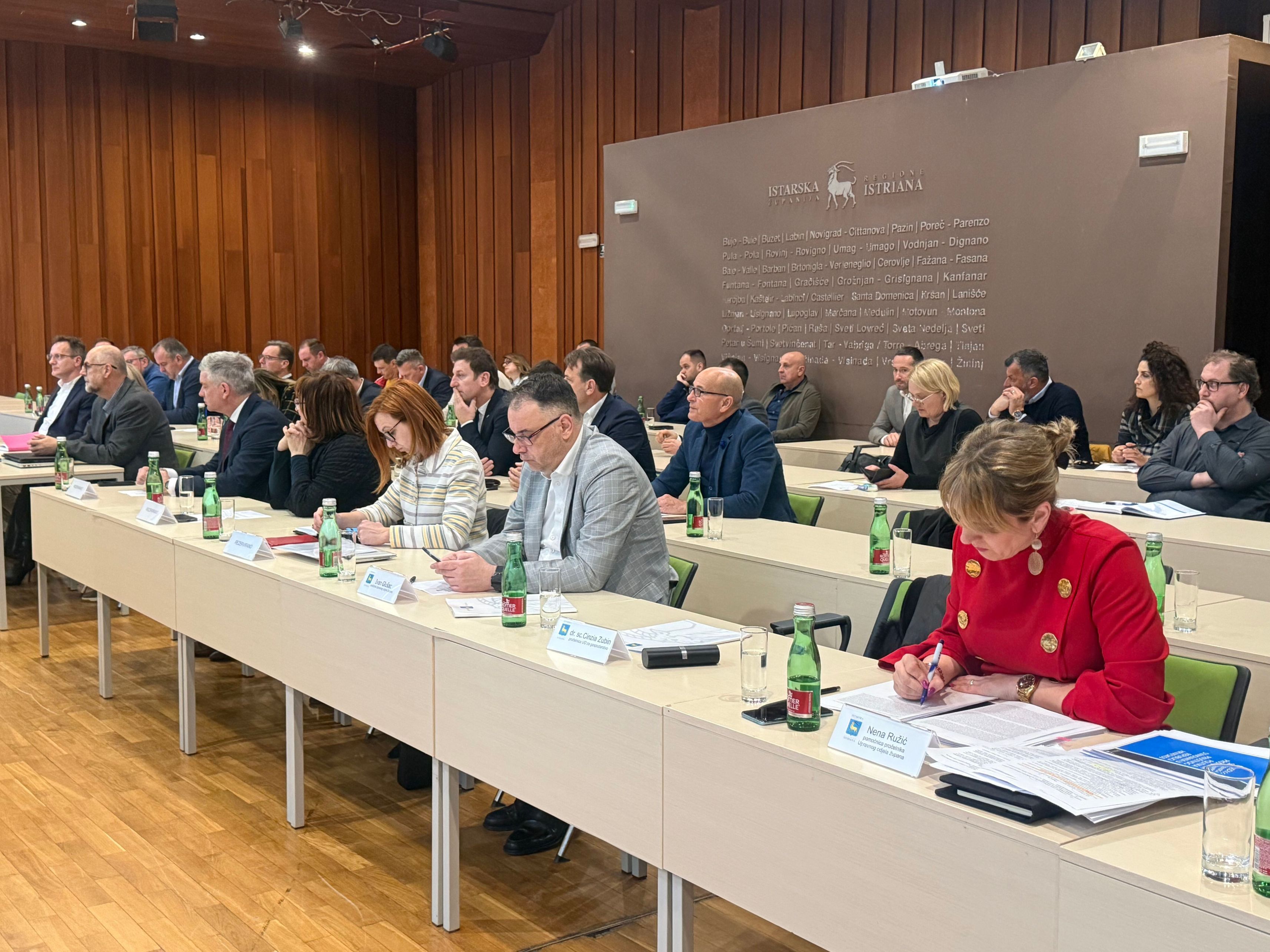 Istarski župan Boris Miletić danas je u pazinskom Spomen domu održao redovnu koordinaciju s istarskim gradonačelnicima i načelnicima, kojoj su prisustvovale i zamjenice župana Gordana Antić i Jessica Acquavita, zatim pročelnik Upravnog odjela župana Ivan Glušac, pročelnica Upravnog odjela za gospodarstvo Cinzia Zubin i pomoćnica pročelnika Upravnog odjela župana Nena Ružić.