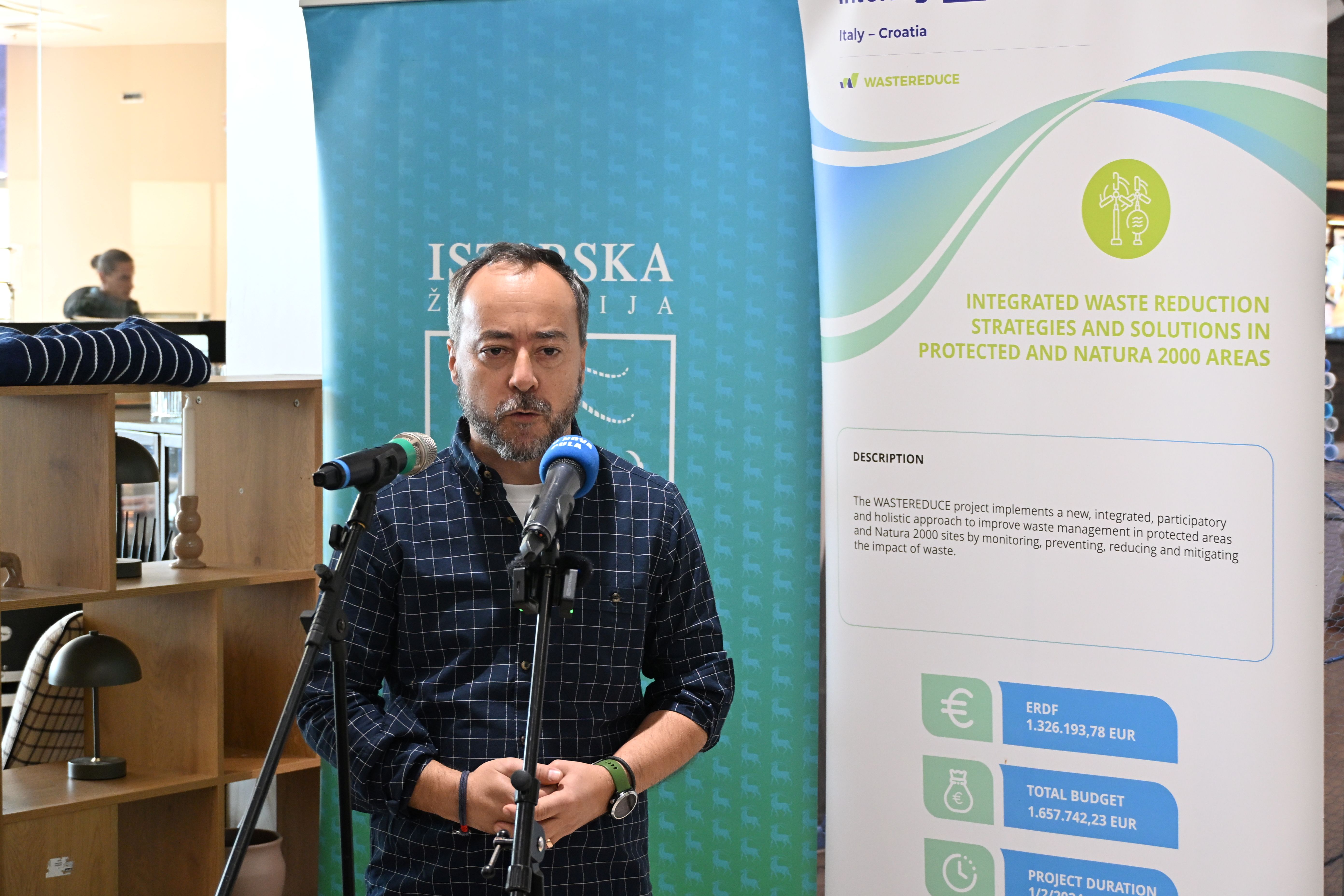 Projekt WASTEREDUCE provodi se u razdoblju od 1. veljače 2024. do 31. srpnja 2026. godine, s ciljem unaprjeđenja upravljanja otpadom u zaštićenim i Natura 2000 područjima kroz inovativna rješenja i jačanje suradnje među partnerima. Ukupna vrijednost projekta iznosi 1.657.742 eura, od čega Istarskoj županiji pripada 208.380 eura, uz sufinanciranje iz Europskog fonda za regionalni razvoj u okviru programa Interreg Italija – Hrvatska.